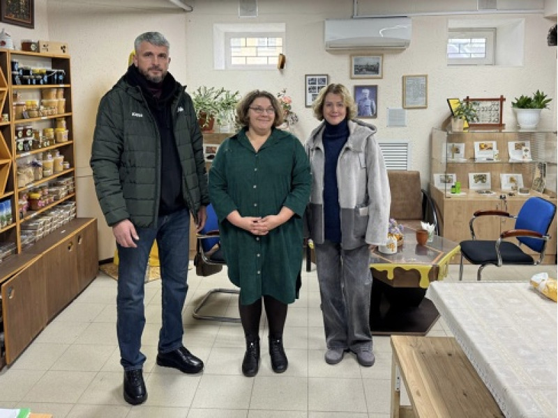 Мы с удовольствием пообщались, обменялись профессиональным опытом, конечно же, сделали памятные фотографии. Договорились о дальнейшем сотрудничестве и обмене контактами, чтобы помогать друг другу и направлять желающих посетить как наши пасеки, так и музей.